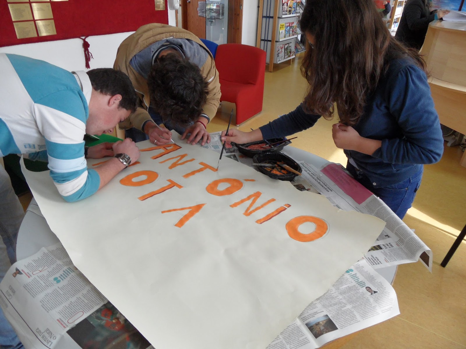A azáfama das pinturas para a receção ao autor António Mota foi grande, pois hoje era o último dia para terminar as pinturas.