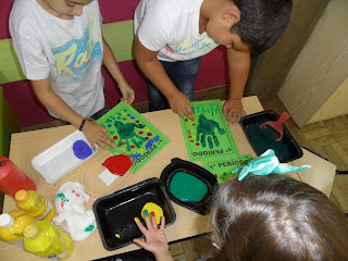 Na turma do 2ºano, da EB de Vale de Santarém, a paisagem de outono foi feita com as mãos e os dedos molhados em tinta.