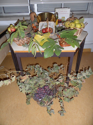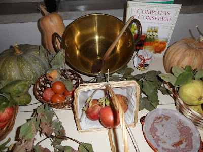 Como sempre, a D. Otília esmerou-se na preparação da mesa do outono...trouxe abóboras, dióspiros, nozes, figos, marmelos...